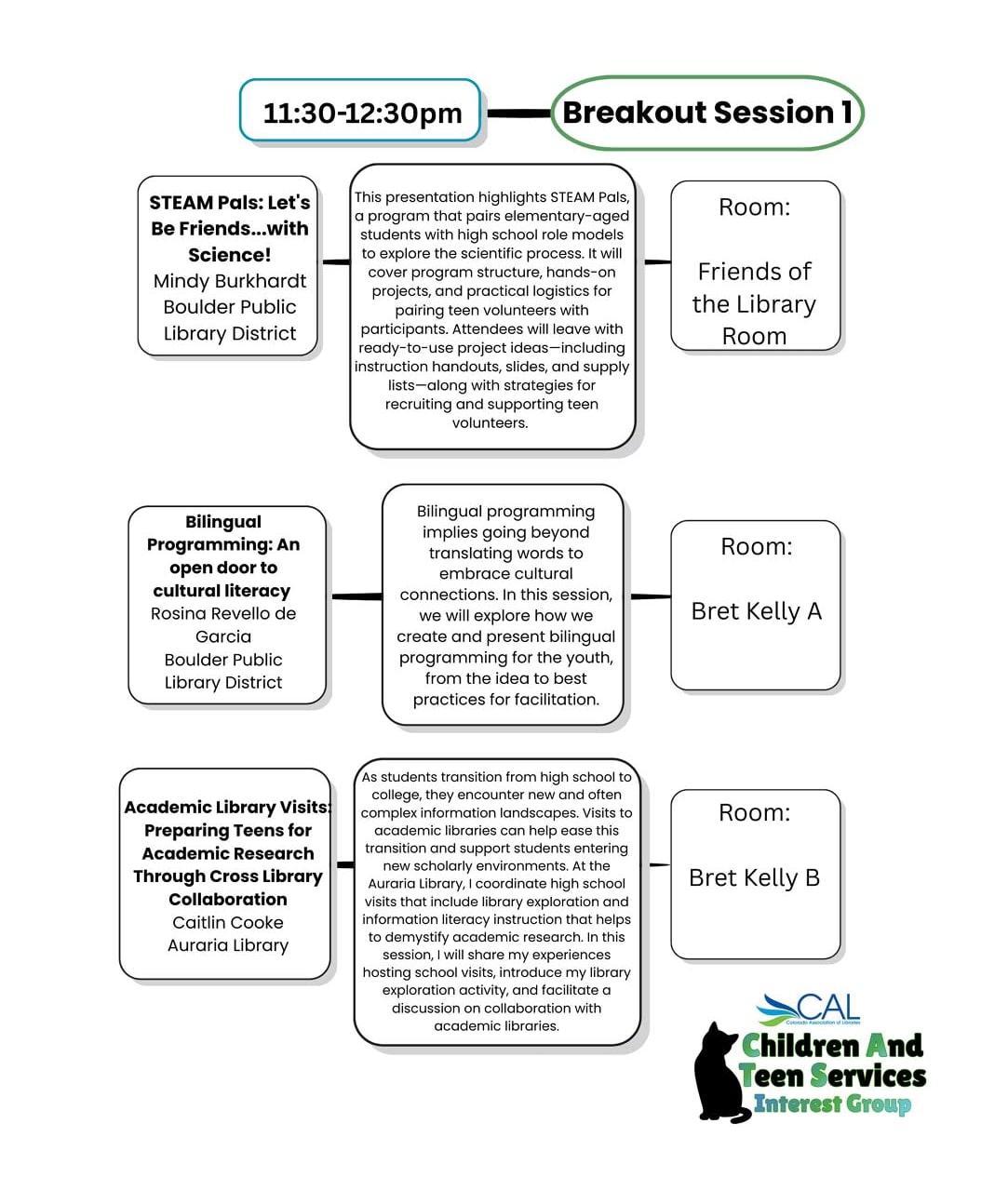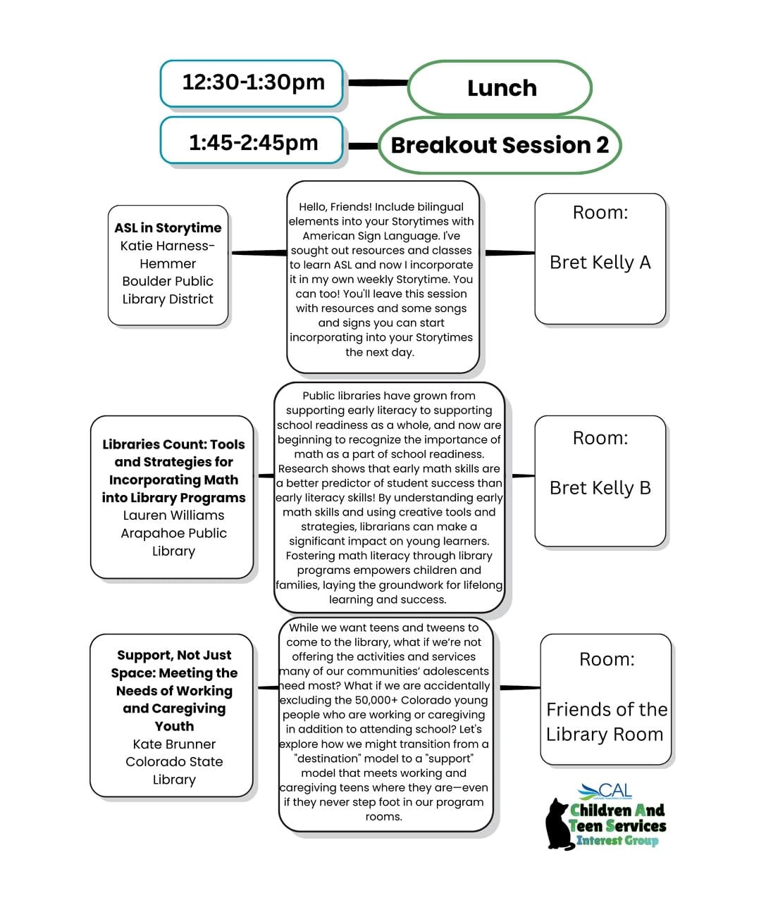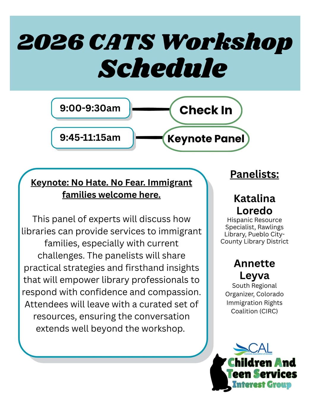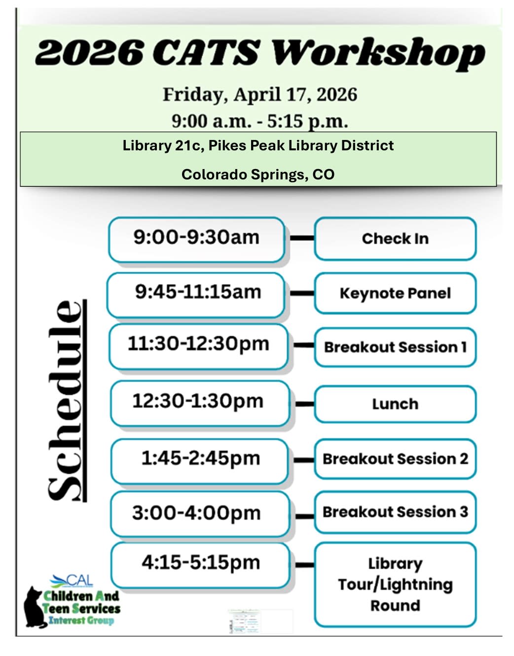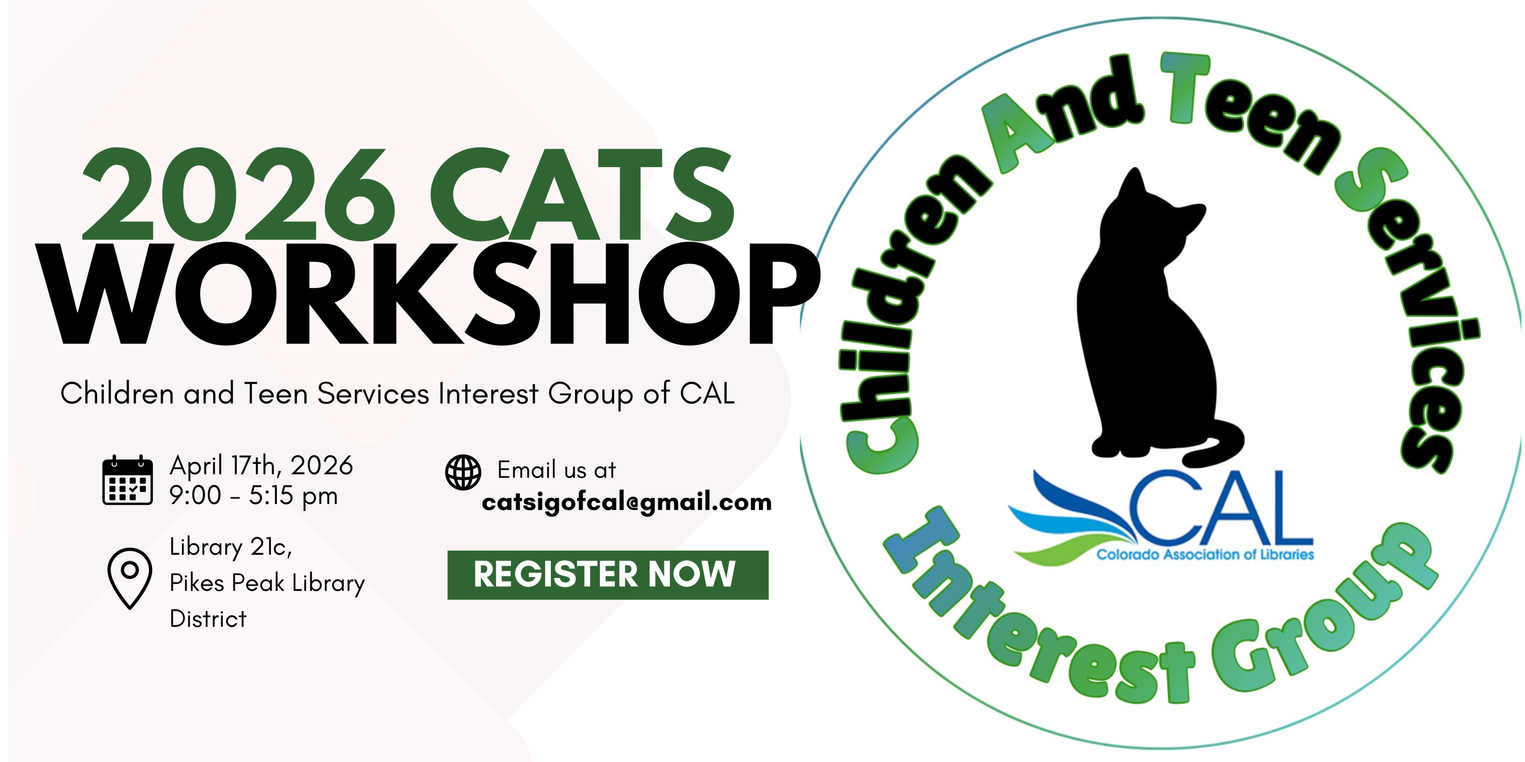 The Children and Teen Services (CATS) Interest Group hosts an annual Winter Workshop to provide a forum for all library staff who serve children and teens. Share ideas while working together to fill the need of consistently providing excellent services to patrons from birth to 18 and their caregivers throughout the state of Colorado.